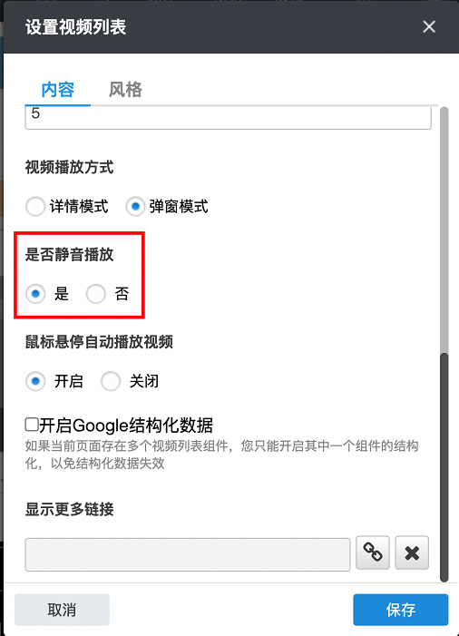视频播放方式:详情模式是点击跳转到视频详情页面播放,弹窗模式是点击直接弹出播放,不会跳转到视频详情页面;