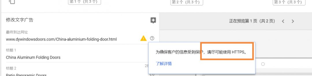 使用Google Ads,这是增加你网站上的流量主要方式之一。目前Google Ads账户后台,已经明确给出建议,建议广告着落页最好使用Https开头的网址,对于没有安装SSL证书的客户,投放广告可能会存在拒登风险。