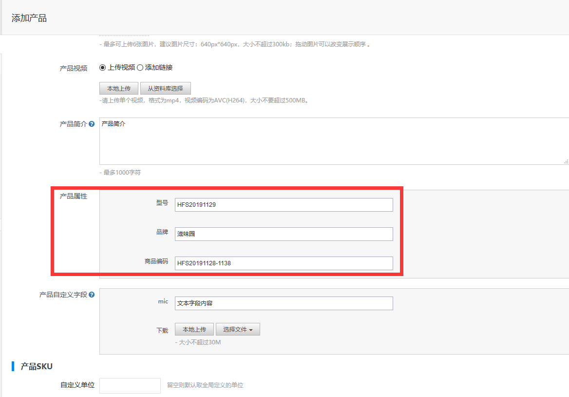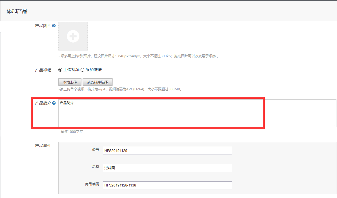 5).产品型号、品牌及商品编码即该产品属性中的产品型号、品牌及商品编码,如下图: