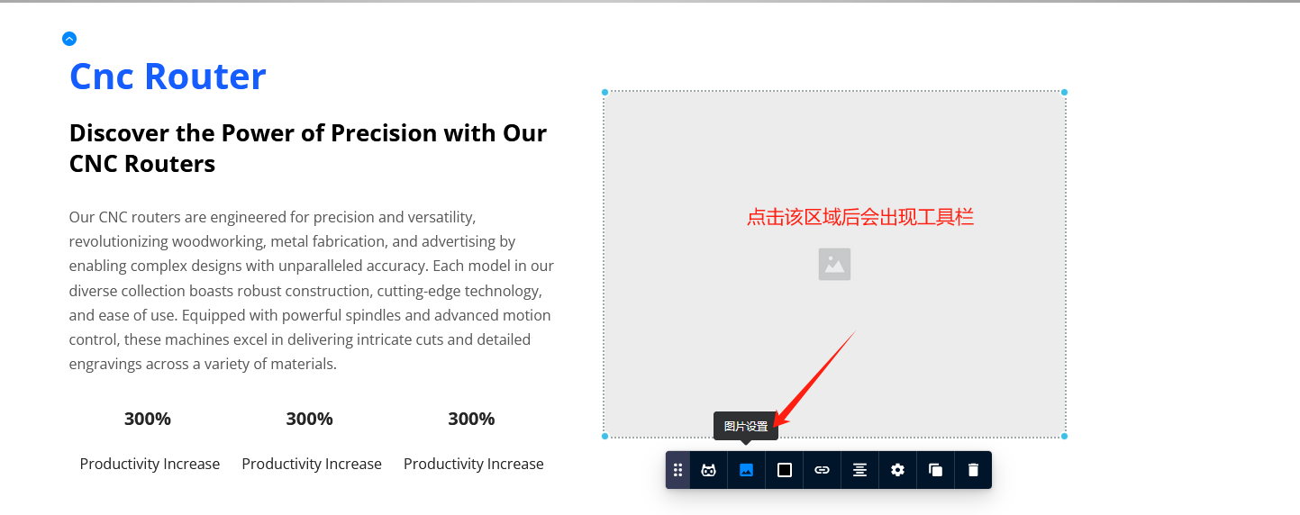 点击图片区域会出现工具栏,里面有图片设置,如图所示: