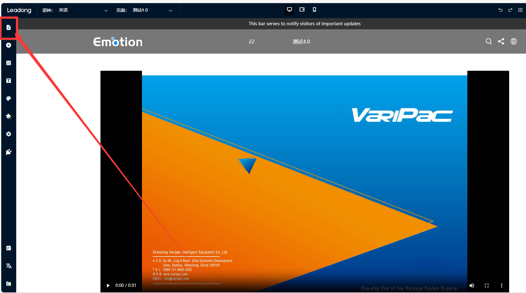 第二步:点击页面左侧工具栏的第一个“页面管理”按钮